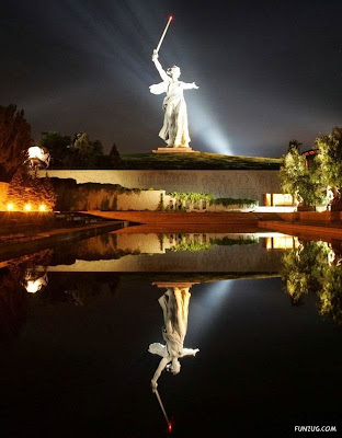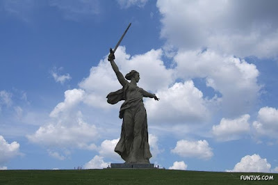 7. "The Motherland" statue, Volgograd, Russia "The Motherland" is a monumental statue by sculptor Yevgeny Vuchetich commemorating the Battle of Stalingrad and dedicated in 1967. The significant structural engineering challenges of the 84 meter tall, 7900 ton sculpture were handled by Nikolai Nikitin. Measured from the tip of her sword to the top of the plinth, the distance is 85 meters. It is located on Mamayev Kurgan in Volgograd.