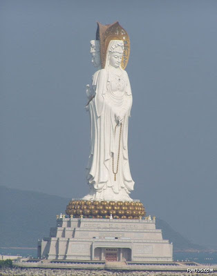 2. Buddhist statue of Guanyin, Sanya, China Sanya is located on Hainan, the smallest province of the People's Republic of China located off the southern coast of the country. Yalong Wan is a local park that located at a beach 7.5 km southeast of Sanya City. The highlight of the park is the a 108-meter Buddhist statue of Guanyin. This statue was completed in May 2005 and is one of the tallest statues in the world.