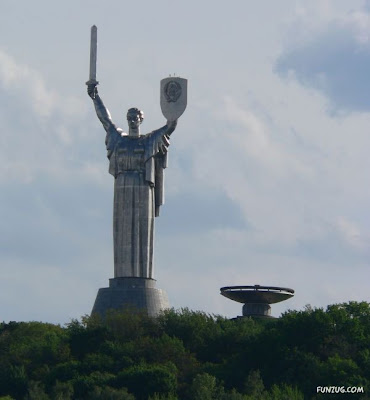 4. Motherland, Kiev, Ukraine Kiev's statue of the Motherland, a memorial of the Great Patriotic War (World War II). The statue itself is 62 meters tall, the overall height is 102 meters.